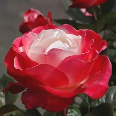 Virág jellemzői: a kétszínű fajták egyik csodaszép változata, krémfehér-piros színben pompázik egész nyáron, teltvirágú, csábító, intenzív illat jellemzi