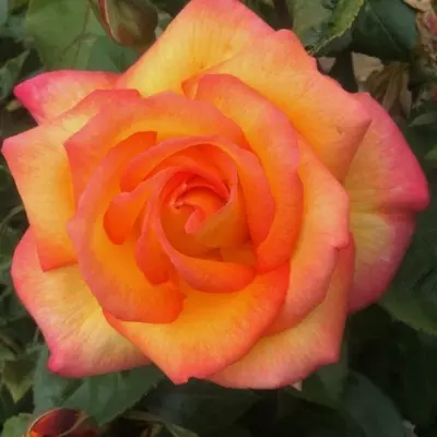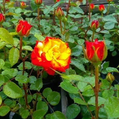 ragyogó sárga-piros színekben pompázó, középnagy, enyhén illatos virágok